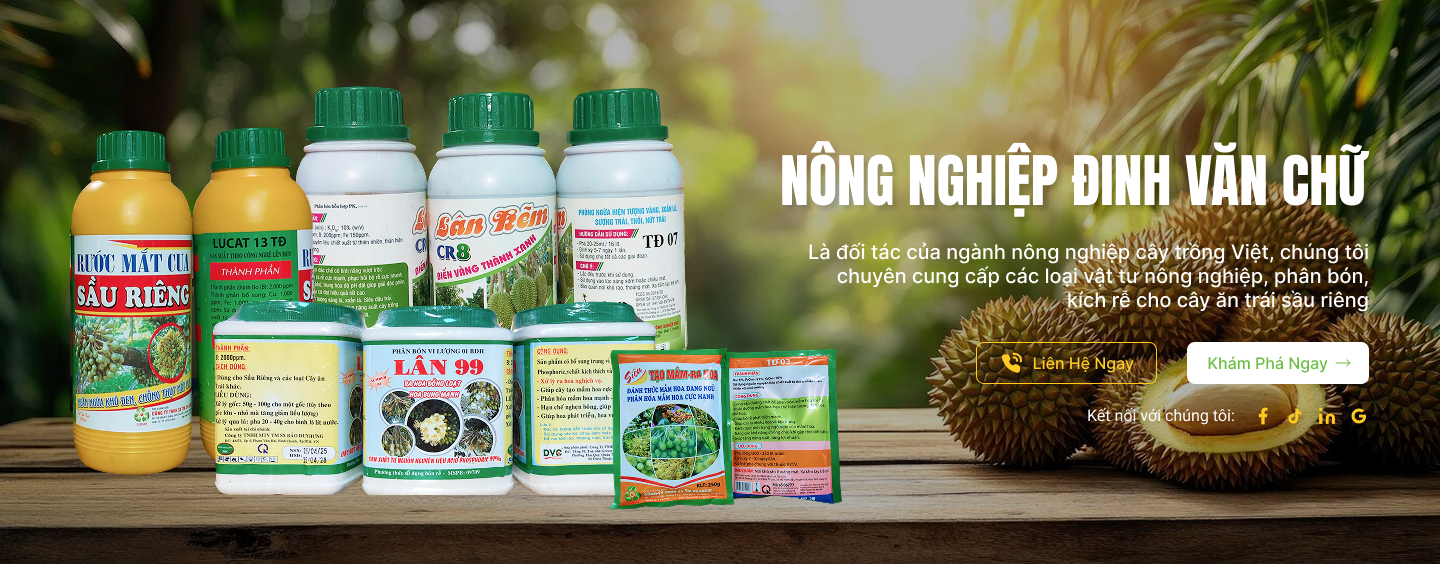 CỬA HÀNG VẬT TƯ NÔNG NGHIỆP ĐINH VĂN CHỮ là địa chỉ uy tín hàng đầu chuyên cung cấp các sản phẩm phân bón, thuốc bảo vệ thực vật dành riêng cho cây sầu riêng tại Tiền Giang và khu vực Miền Tây Nam Bộ. Với nhiều năm kinh nghiệm thực chiến trong ngành vật tư nông nghiệp, chúng tôi cam kết mang đến cho bà con những giải pháp tối ưu nhất, giúp cây sầu riêng phát triển khỏe mạnh, đạt năng suất cao và cho trái chất lượng vượt trội.